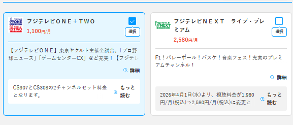 ※スマホからの申し込みは商品名を入力で「フジテレビONE+TWO」と検索して進んでください。