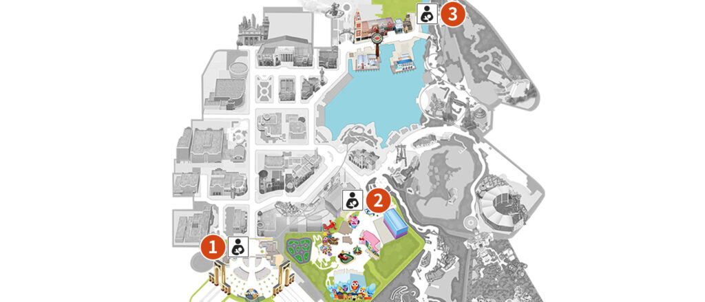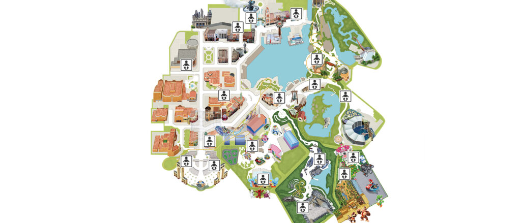 エリア化粧室(飲食施設以外のパーク内化粧室)全18ヶ所に男女各1台設置。